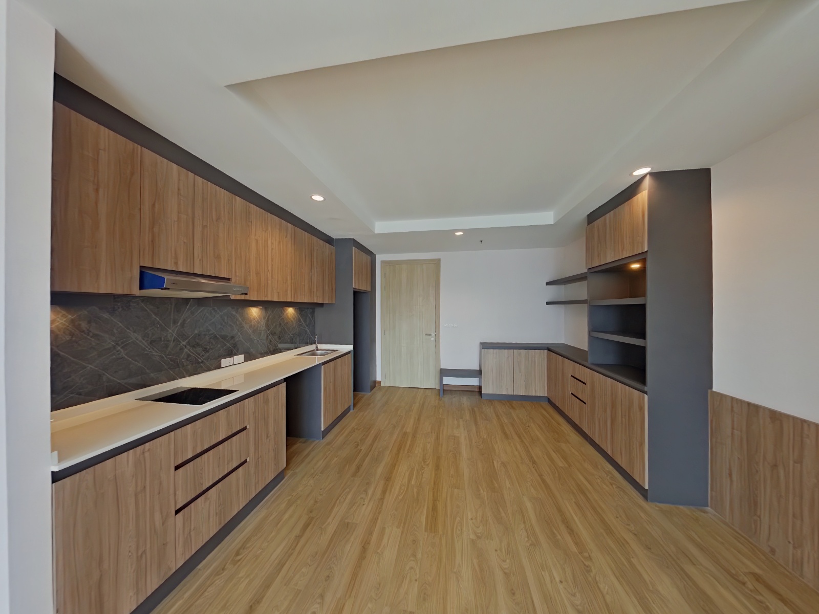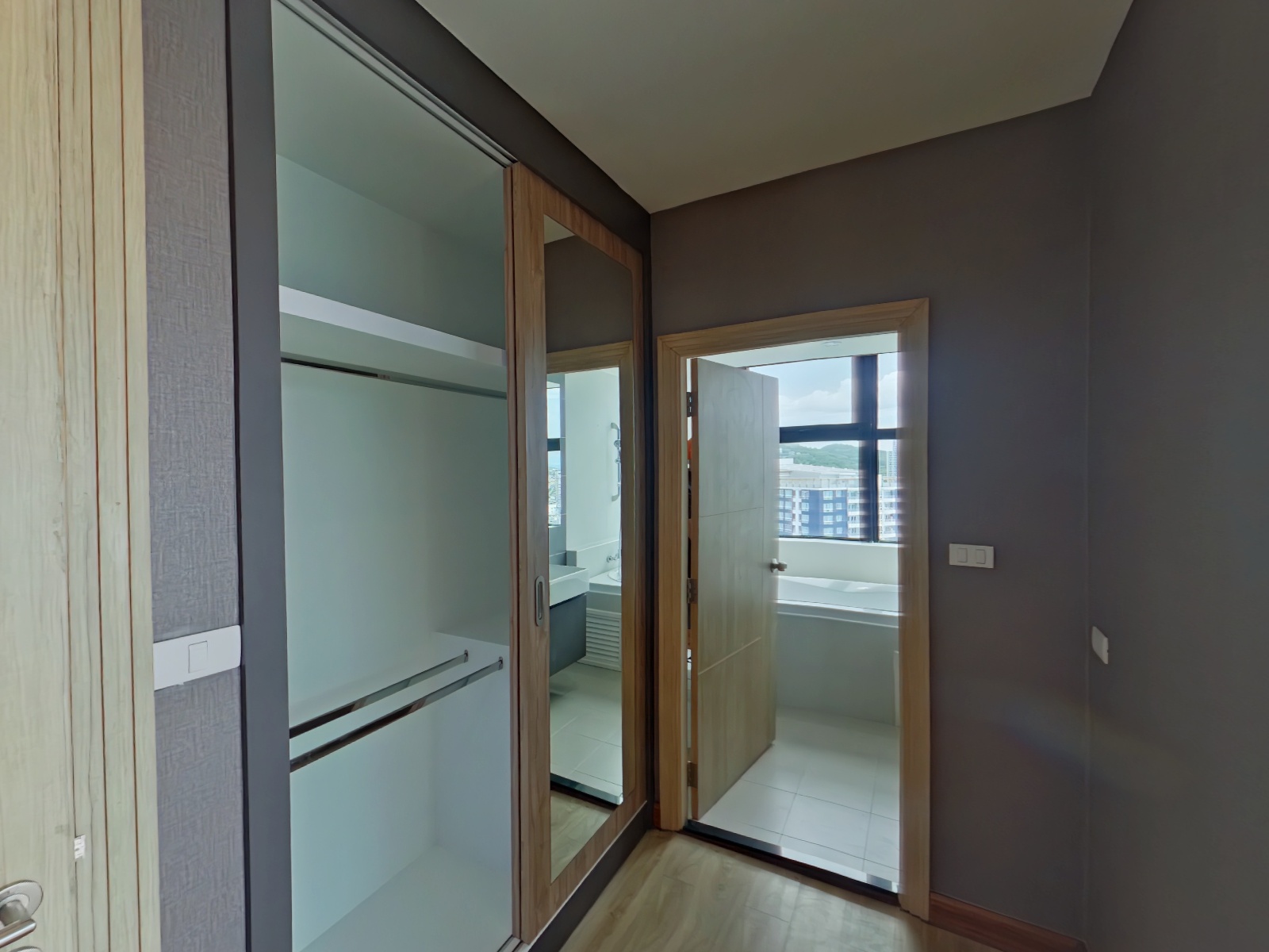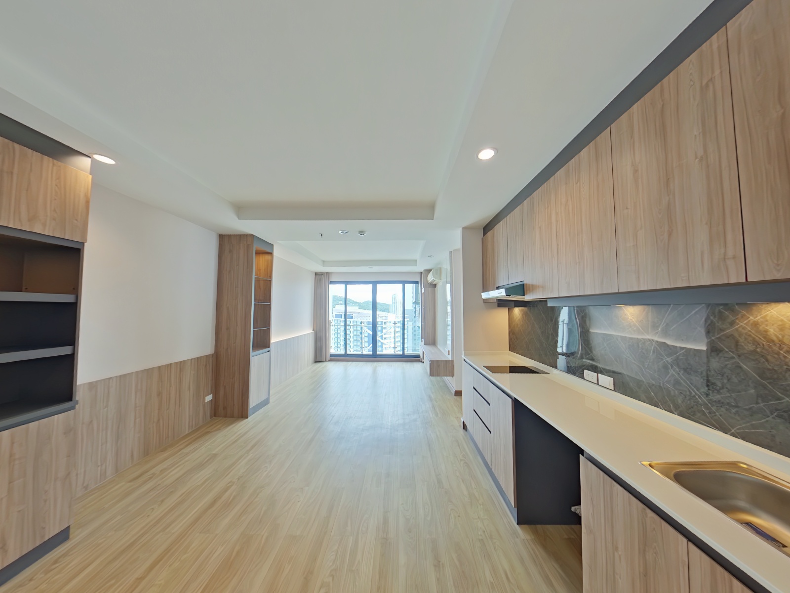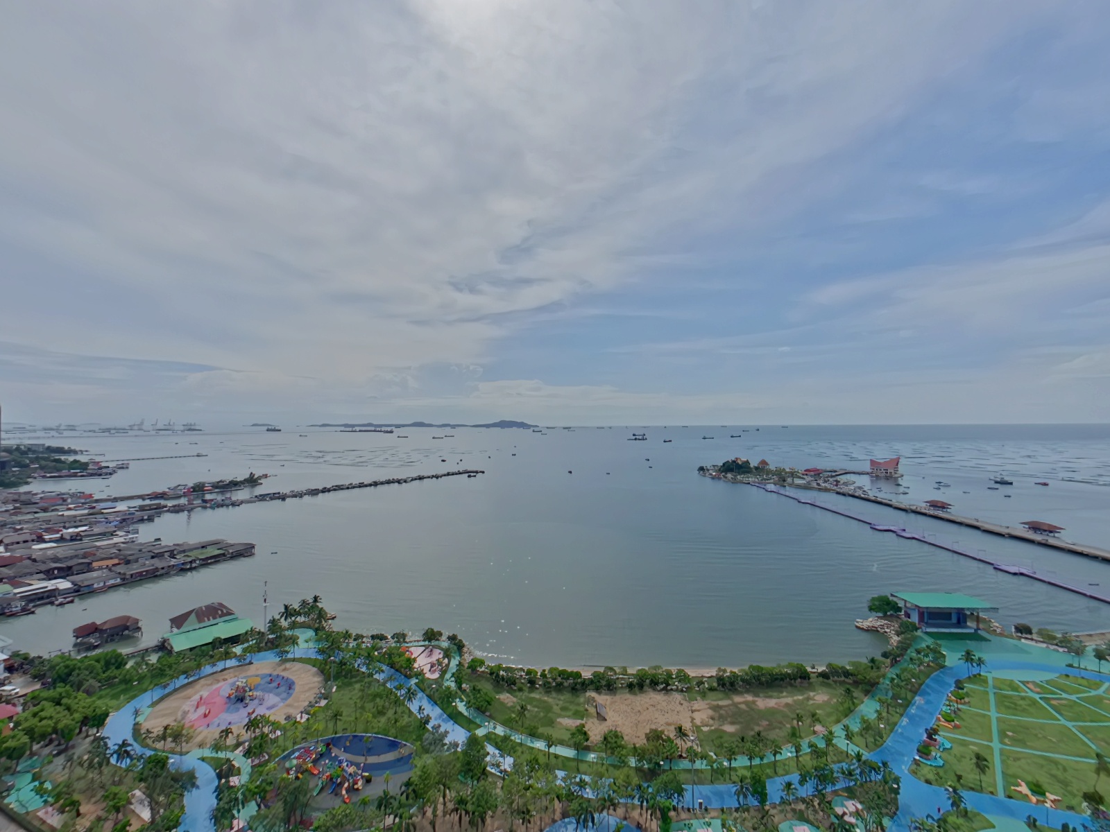 本物件は2016年完成、21階建と28階建の2棟から成る総戸数733室の大規模コンドミニアムで、シラチャ市内でも存在感のある物件です。ご紹介のユニットは2ベッドルームタイプ(約80.6㎡)であり、総階数28階の26階に位置するためリビングルームおよびマスターベッドルームからの眺望が非常に良好です。その為、低層階の同タイプでは得られない、シラチャ湾を望む開放的な景色が広がります。特に高層階ならではのオーシャンビューはこの物件の大きな魅力です。