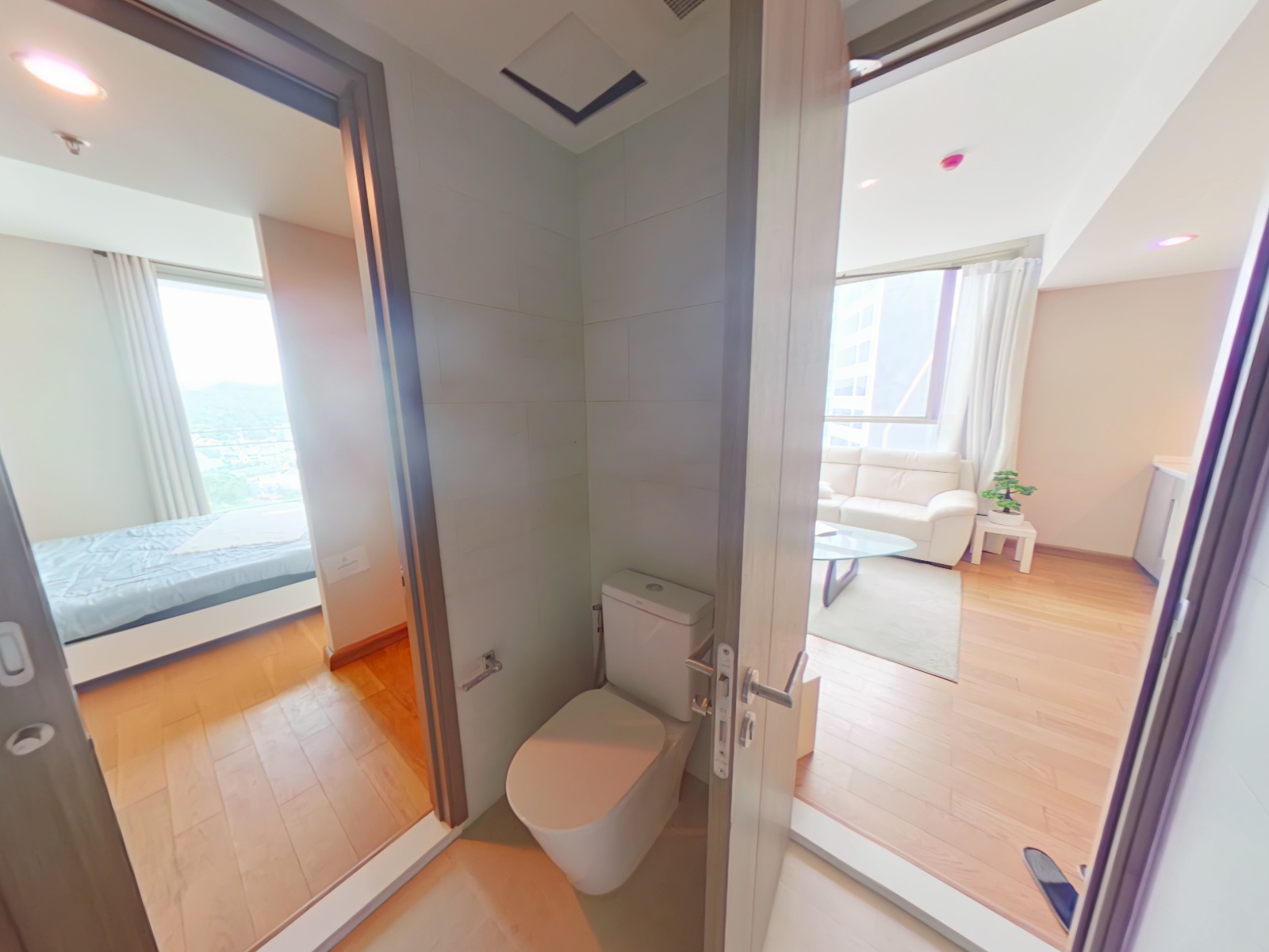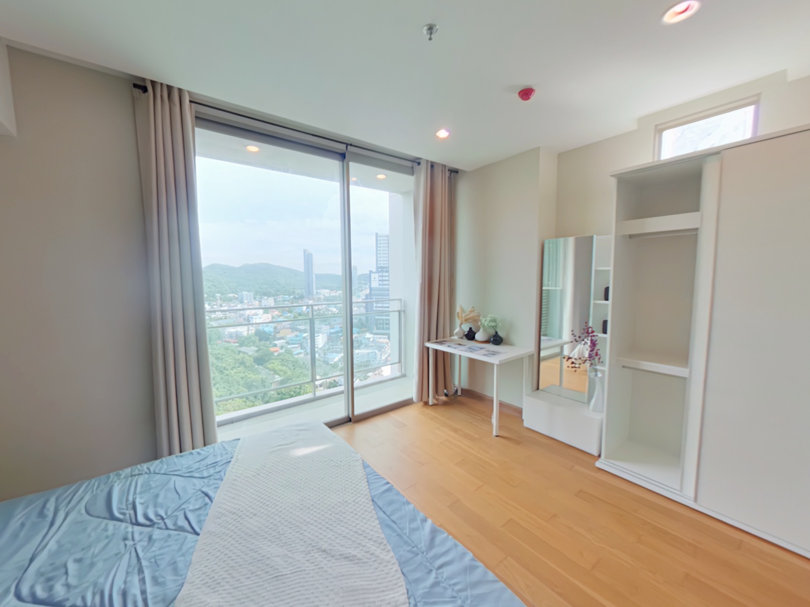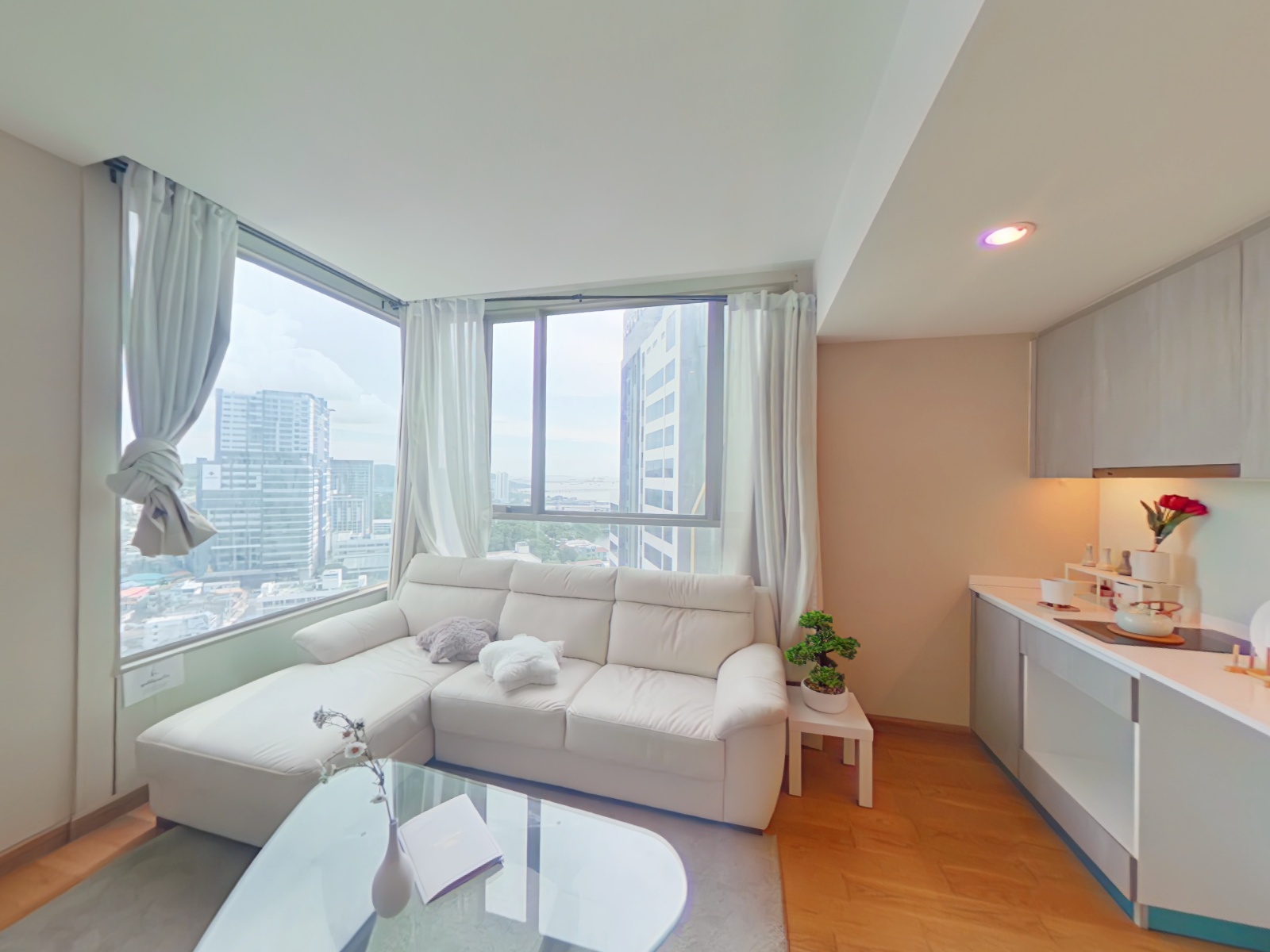 リビングルームとマスターベッドルームからの眺望が良く、両部屋からはシラチャのシティビューを望むことができ、開放感あふれる眺望が日常を彩ります。またリビングルームはコーナーに位置していることから、採光性が非常によくとても開放感があります。若干エントランス周りが狭く感じるものの、全体的にはゆとりのあるレイアウトになっております。