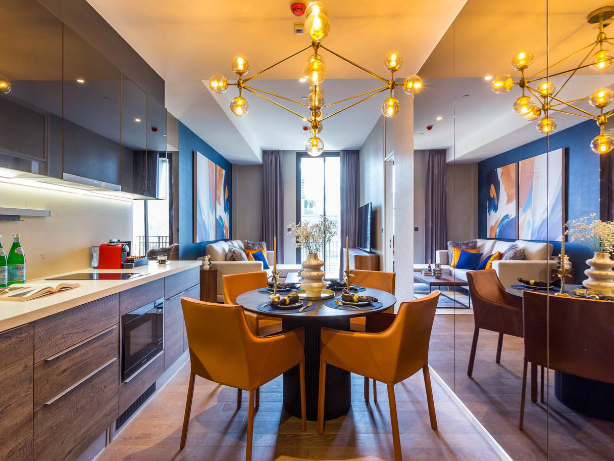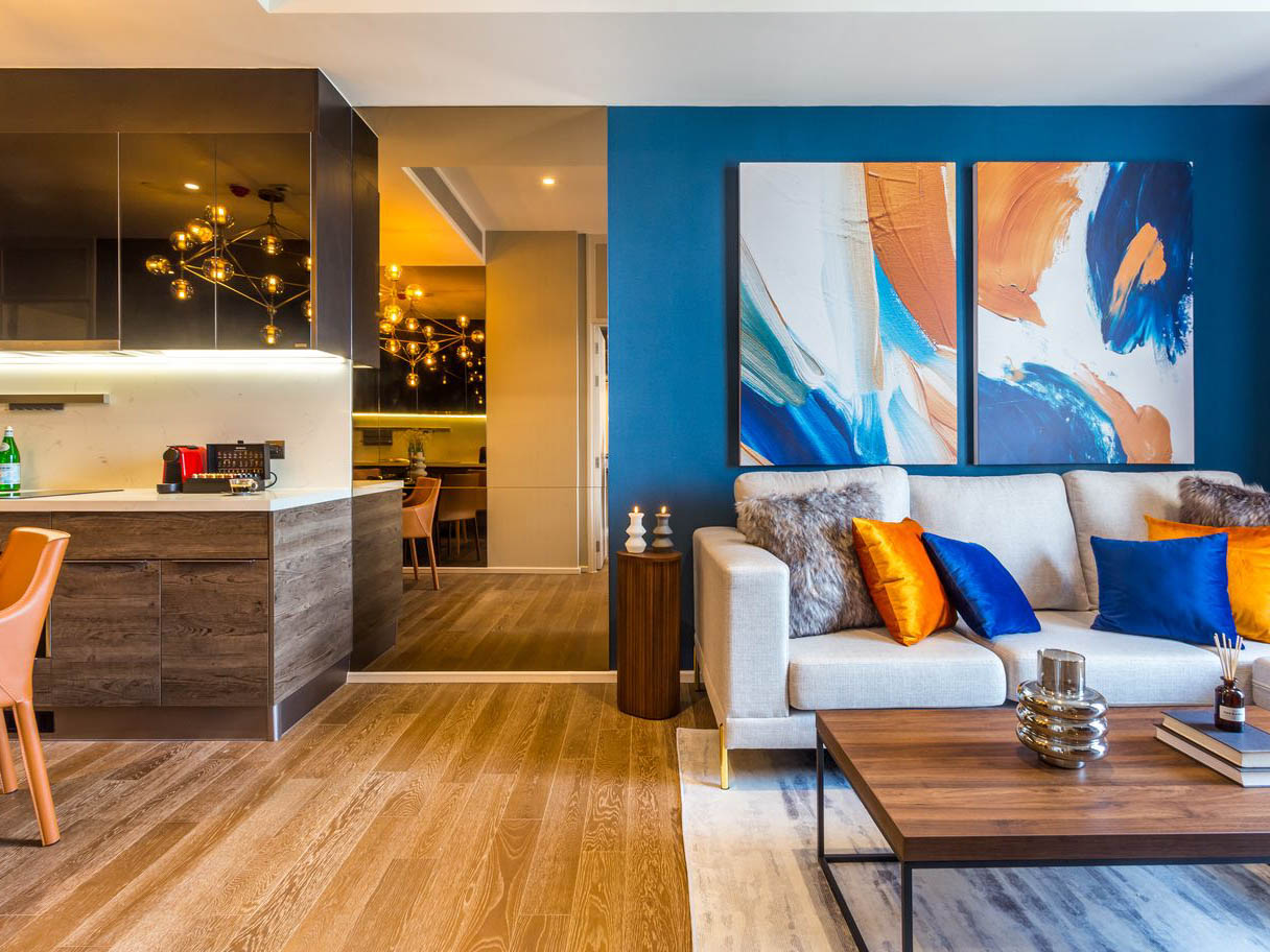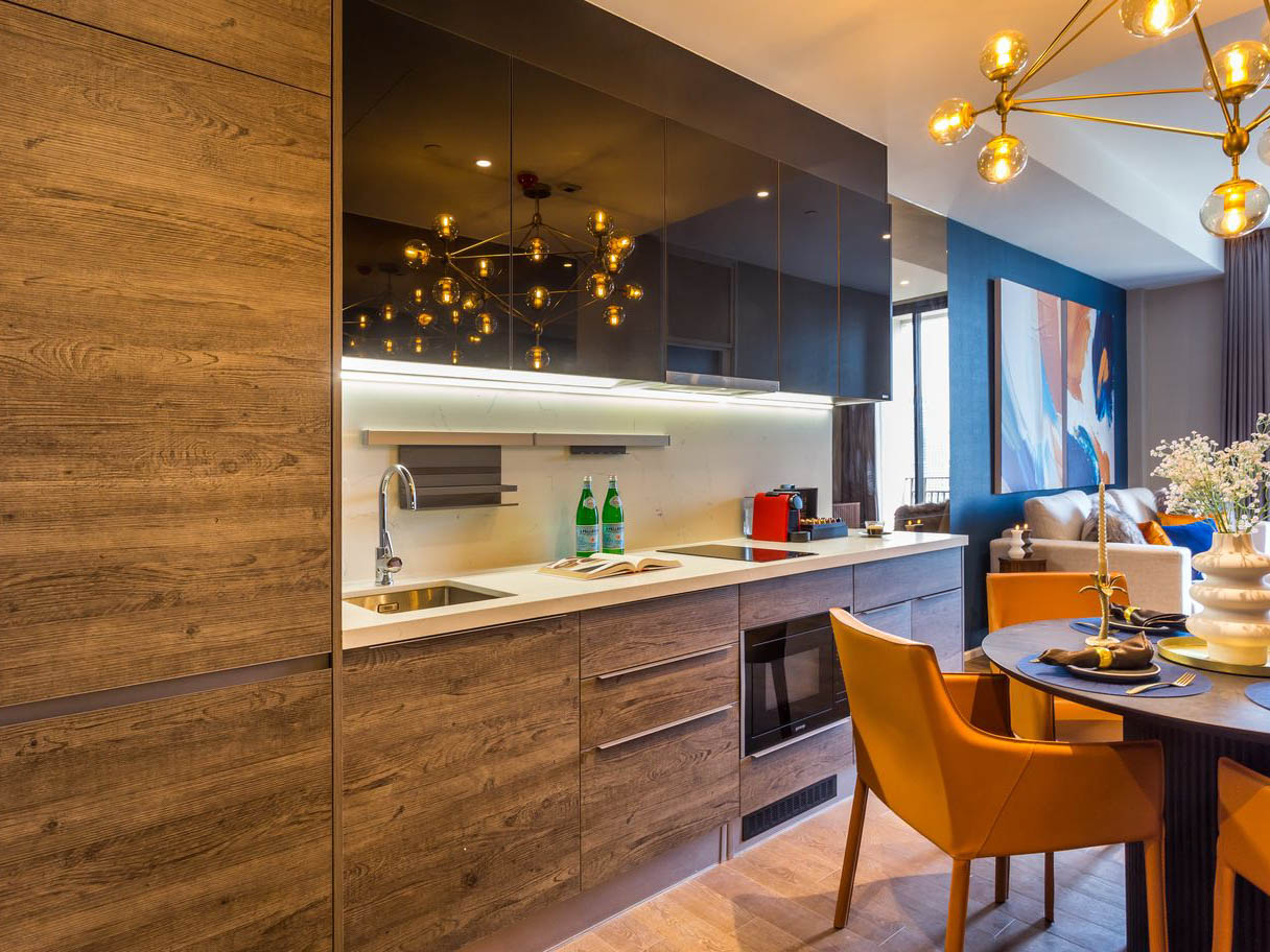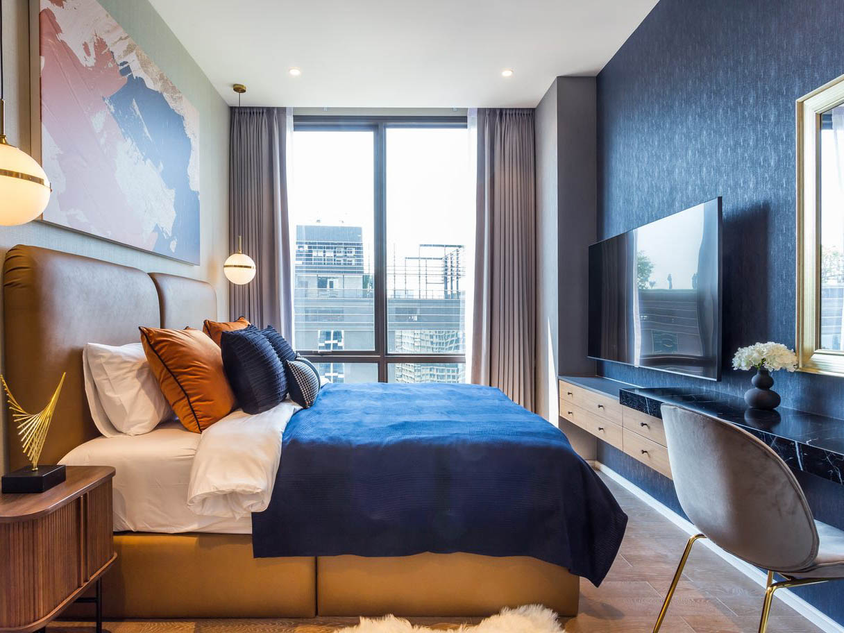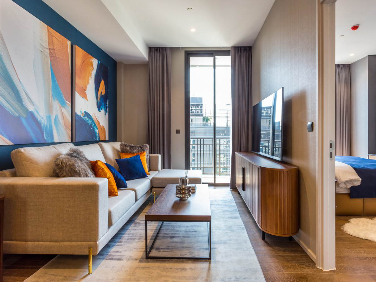 1ベッドルーム・54㎡の間取りは最新のレジデンスでは広めの間取りであり、単身での滞在では快適に過ごせる設備が整っております。
