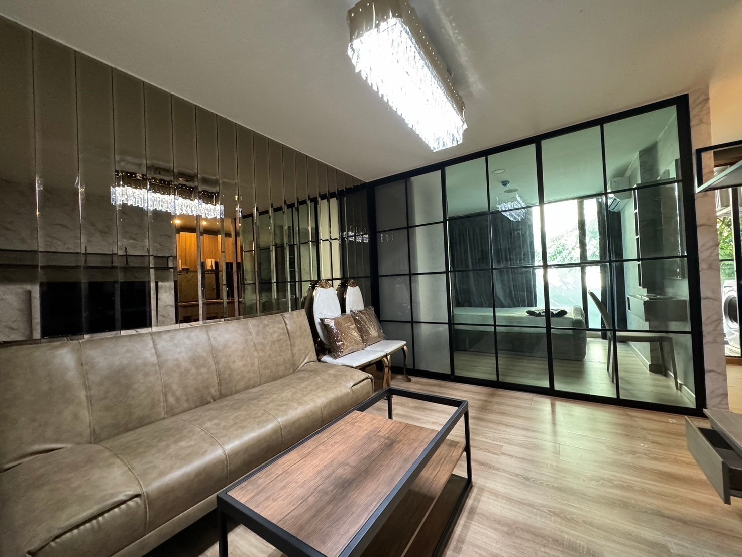 よく見られるスタジオタイプの中心に間仕切りを設置し、1ベッドルームに仕上げたレイアウトとなっております。