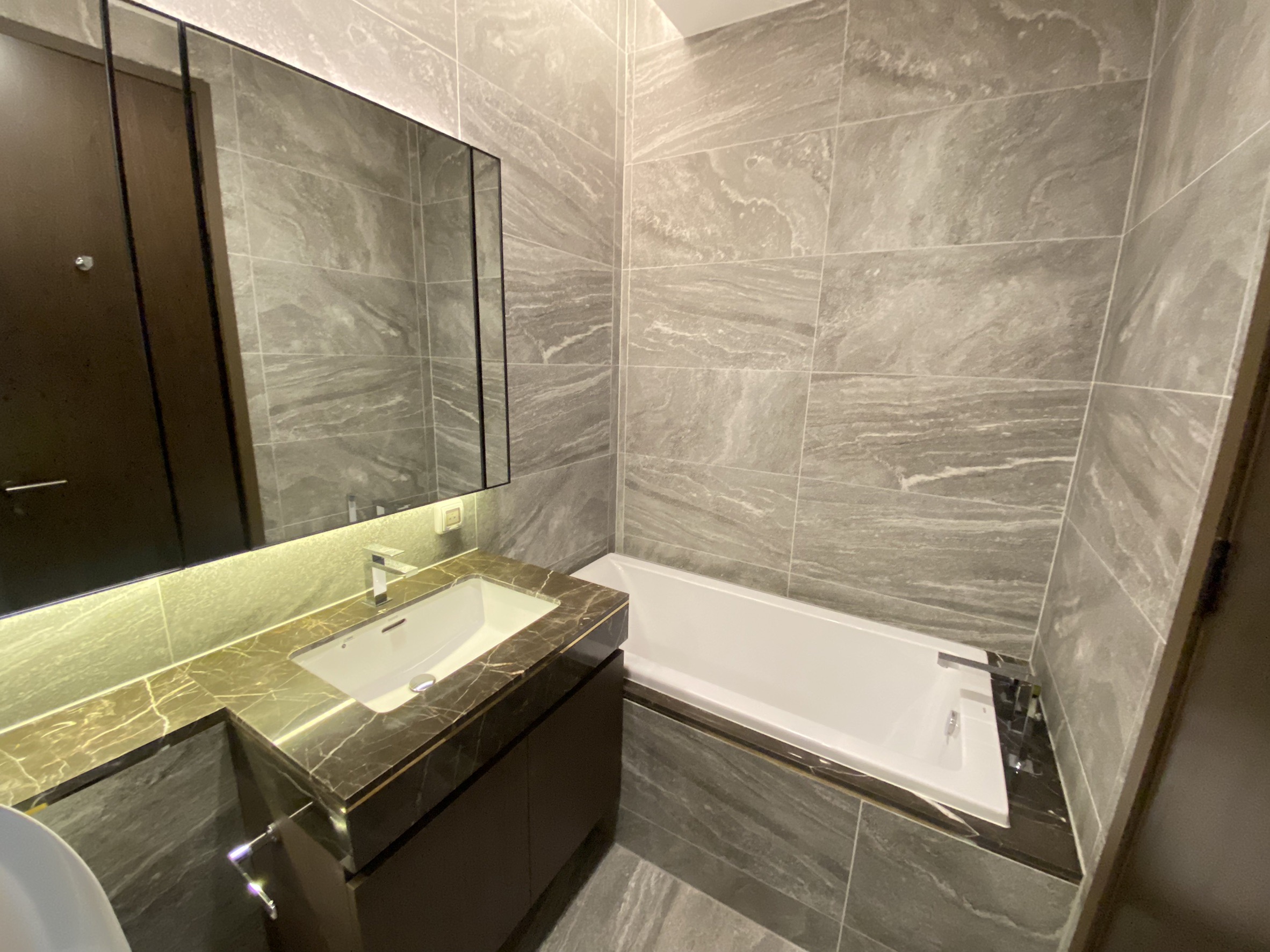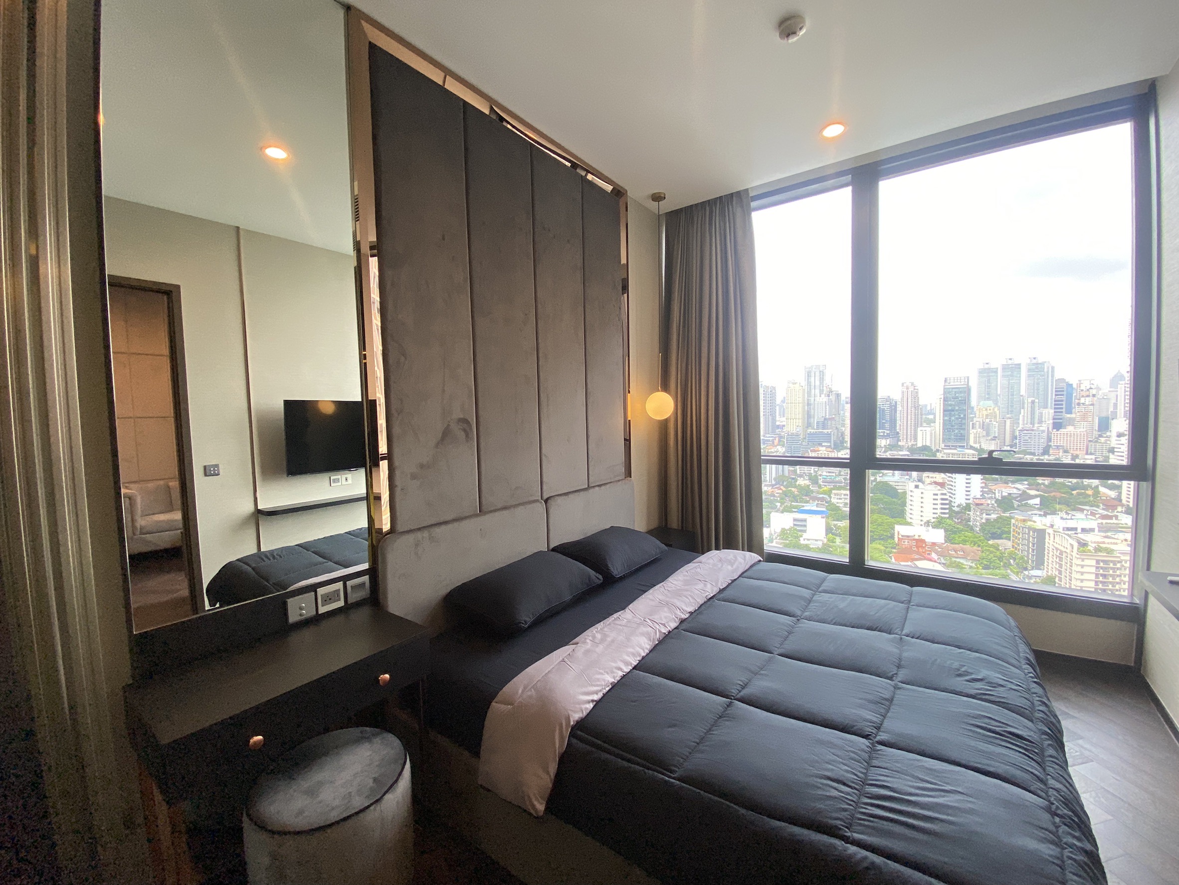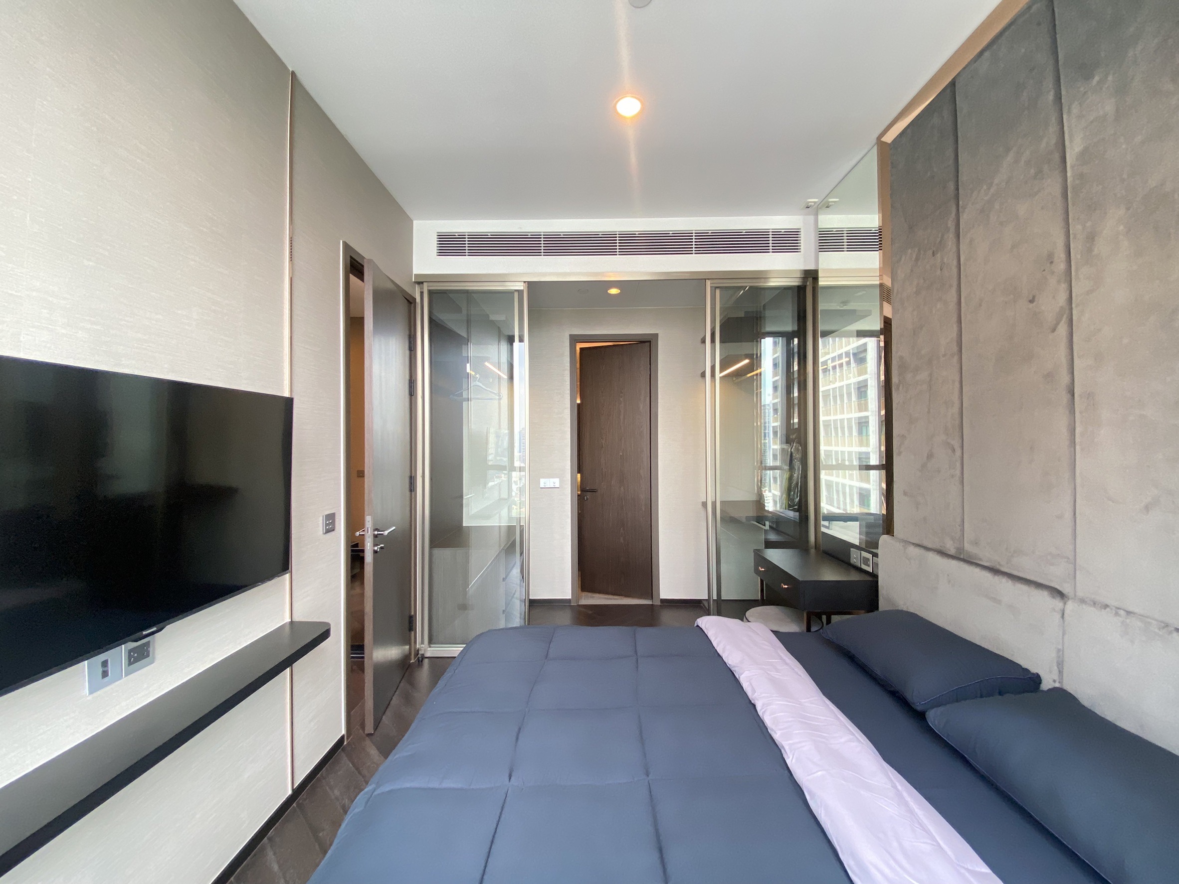 1ベッドルーム・38.5㎡という広さは、最近のコンドミニアムのトレンドとしては比較的広めの間取りです。カウンター付きのキッチン、収納スペースを確保したベッドルーム等、単身が使いやすいレイアウトとなっております。