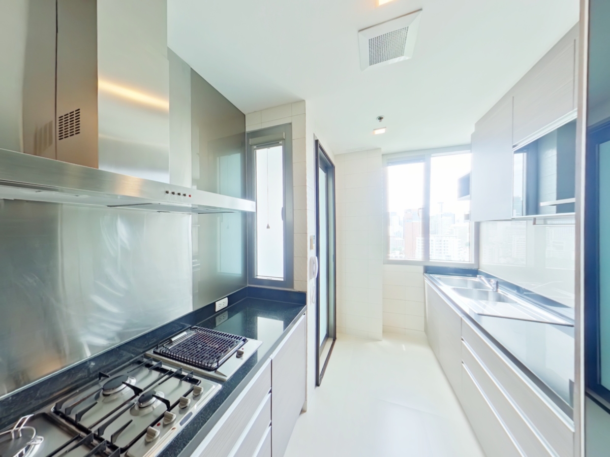 また、バンコクのアパートでは珍しく、キッチンでガスレンジが使用可能です。玄関を入ると、ゆとりあるリビング&ダイニングが広がり、日本ではなかなか見られない開放的な住空間が魅力です。天井が高く、高級感のある内装に新しい家具が揃っており、中高層階のお部屋からは眺望も楽しめます。海外生活らしいゆとりを感じられる物件といえるでしょう。(170㎡の広さがあります。)